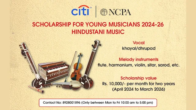 मुंबई : नेशनल सेंटर फॉर परफॉर्मिंग आर्ट्स (एनसीपीए), मुंबई और सिटी इंडिया ने 'सिटी एनसीपीए स्कॉलरशिप फॉर यंग म्यूजिशियंस' (युवा संगीतकारों के लिए सिटी एनसीपीए स्कॉलरशिप) की वापसी की घोषणा की है। इसके आवेदन के लिए वे छात्र मान्य हैं, जो हिंदुस्तानी संगीत के क्षेत्र में उन्नत प्रशिक्षण ले रहे हैं। इस स्कॉलरशिप का उद्देश्य मुख्य रूप से युवा और संगीत (वोकल- ध्रुपद और ख्याल, इंस्ट्रुमेंटल म्यूजिक- मेलोडी) का प्रशिक्षण लेने वाले 18 से 35 वर्ष के आयु समूह के लोगों को प्रोत्साहित करना है। नौ उम्मीदवारों को स्कॉलरशिप के लिए शॉर्टलिस्ट किया जाएगा, ताकि वे हिंदुस्तानी संगीत में कुशलतापूर्वक पूर्णकालिक उन्नत प्रशिक्षण प्राप्त कर सकें।